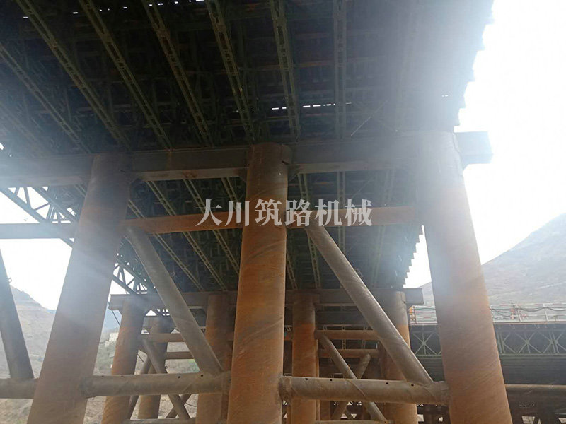 棧橋型號(hào):便橋采用(4×12m)+3m+9m+(2×12m)+3m,9跨貝雷架鋼便橋,橋梁全長(zhǎng)88.7m,橋梁寬度12m。